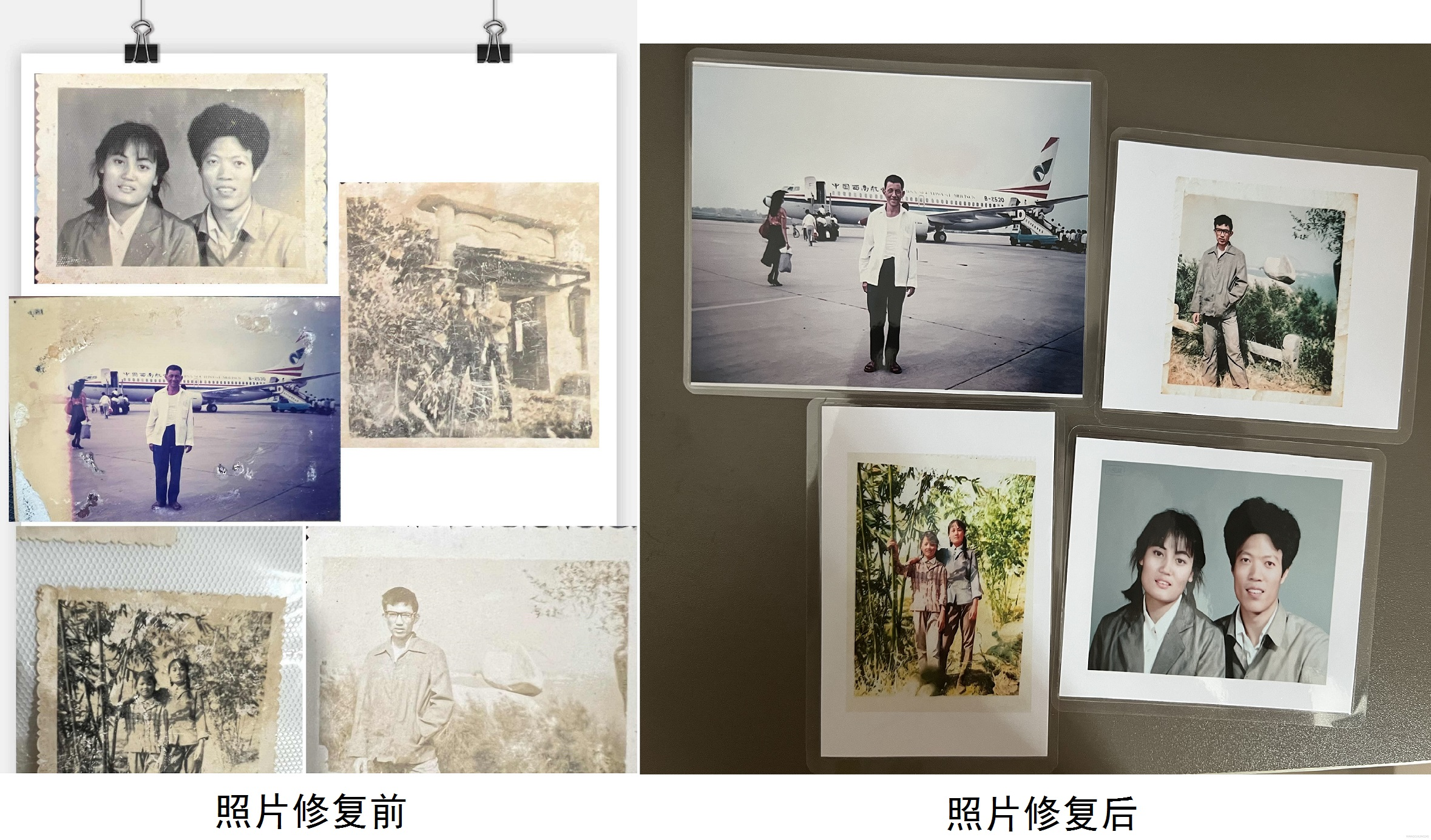 当志愿者们将装帧一新的照片送到居民手中时,收获的是满满的惊喜与感动。尽管曾阿姨的一张照片因面部磨损过于严重未能完美复原,但她拿着其他几张已然色彩鲜明、面容清晰的“新”照片,依然激动不已:“太感谢了!没想到还能看到自己年轻时的彩色模样,这就像找回了逝去的青春。”