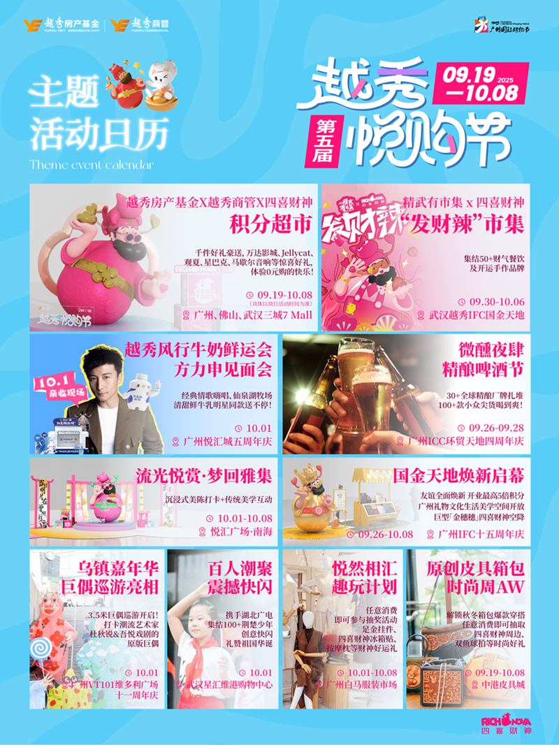 从IP创新到运营深耕,从政策响应到城市协同,第五届悦购节充分展现了越秀商管作为城市商业运营者的综合能力。它证明了优秀的商业活动既能精准捕捉消费情绪,更能深度融入城市发展与政策导向。