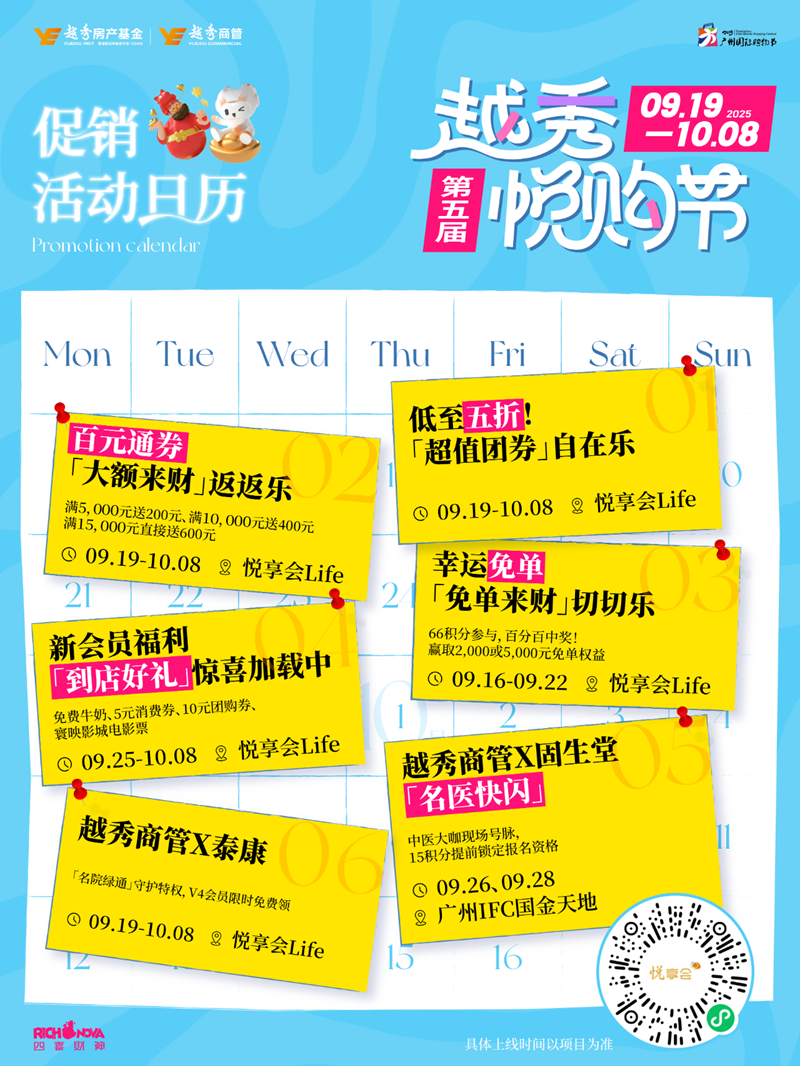 从品牌视角来看,第五届悦购节不仅是一场成绩亮眼的促销活动,更是越秀商管“陪伴成长”品牌理念的集中体现。通过打造有温度的消费场景、提供有惊喜的会员权益,越秀商管正与消费者建立起“共享城市美好生活”的长期情感联结,真正实现与消费者和城市共同成长。
