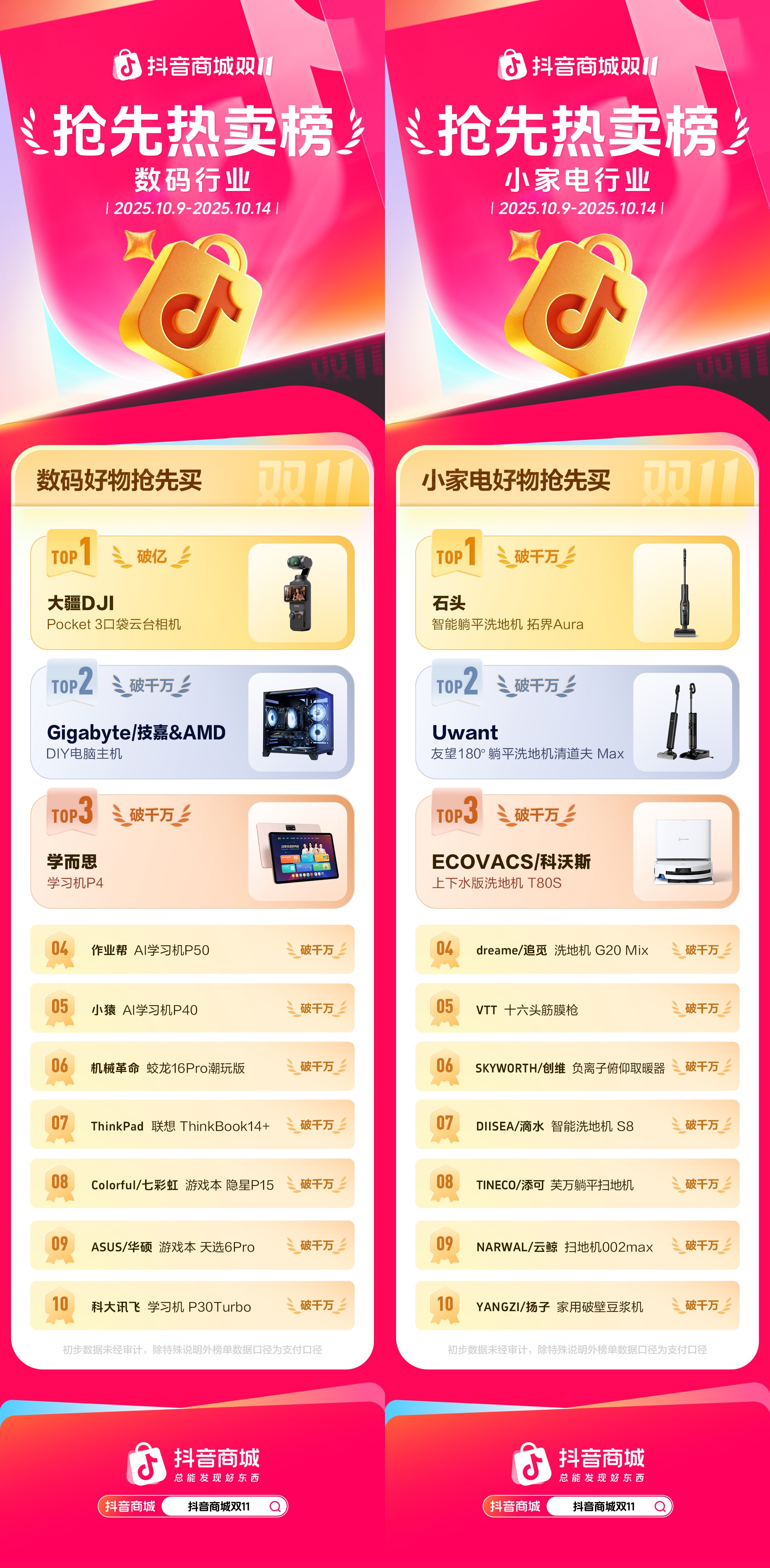10月15日,抖音电商发布各行业双11“抢先热卖榜”,运动户外、护肤、数码等行业涌现爆款好物。