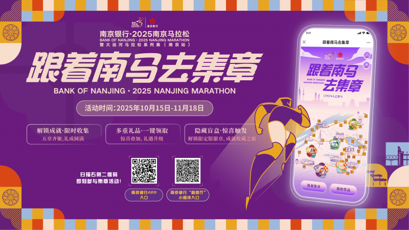 随着2025 年南京马拉松赛事筹备工作的逐步推进,一场融合运动激情与城市文化的盛会即将拉开帷幕。为了让广大跑者在挥洒汗水、挑战自我的同时,深度感受南京这座古都的独特韵味,赛事冠名赞助商南京银行特别推出了“跟着南马去集章”特色活动,以趣味互动串联赛事与城市体验,为跑者及市民打造一场 “运动 + 文旅” 的双重盛宴。
