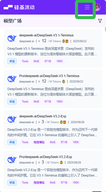 5、返回模型广场,打开右上角筛选器,选择【DeepSeek】。