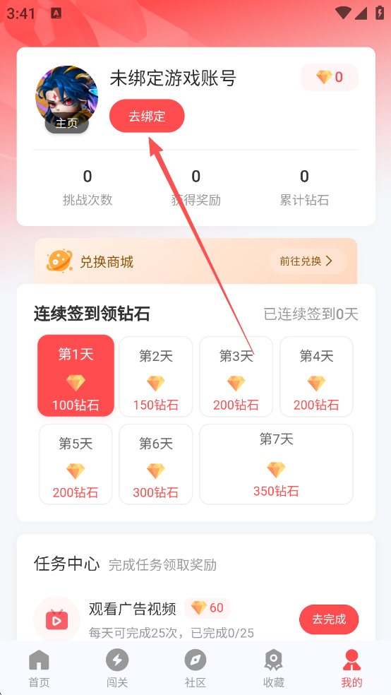 2、绑定好之后就可以参加首页的皮肤挑战了