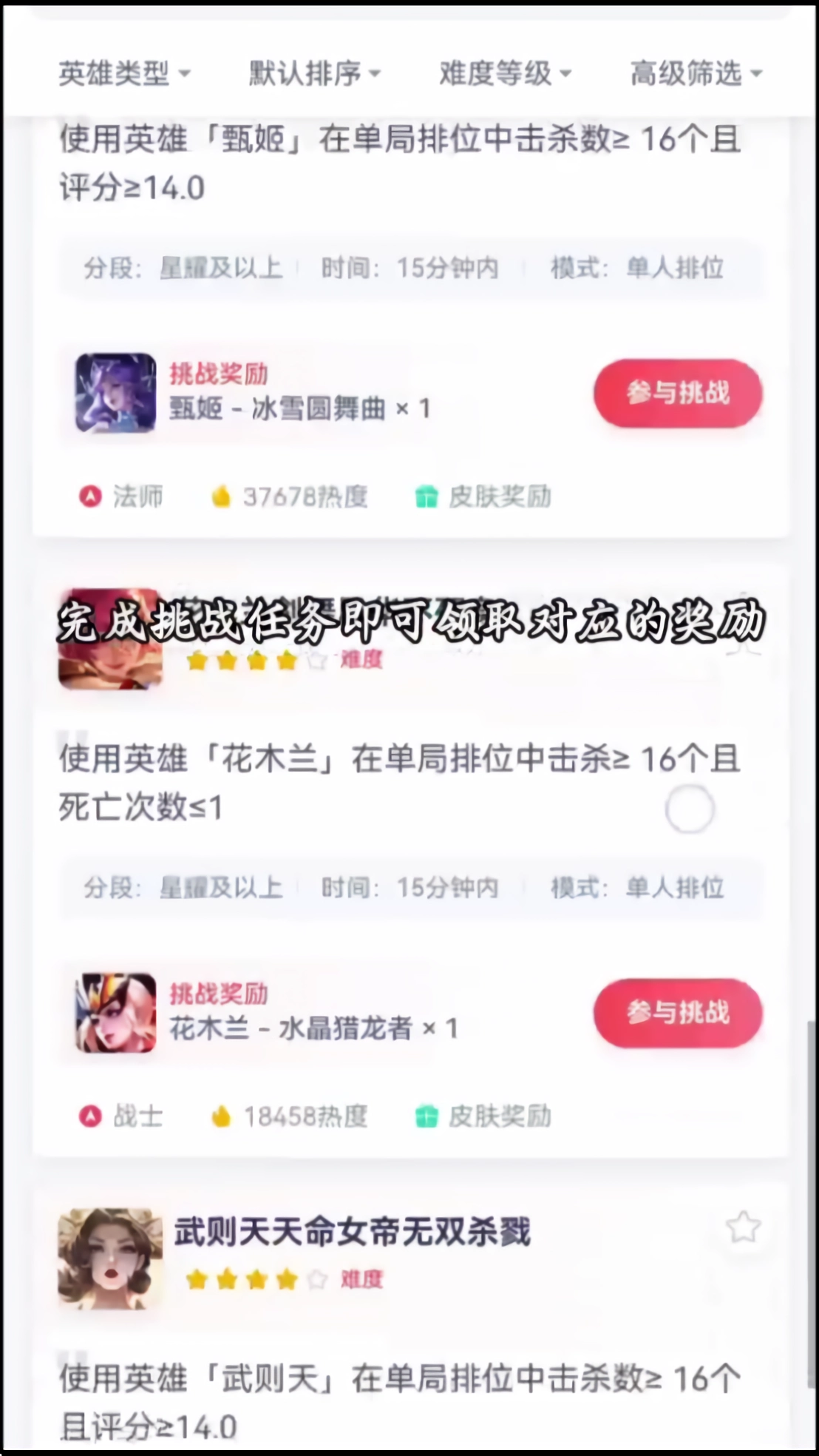 3、不同挑战的难度不同,皮肤奖励也会不同