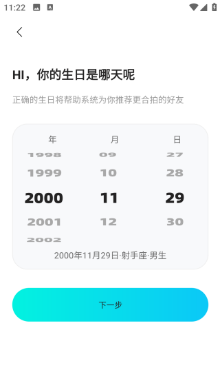 3、进入之后选择性别,然后自己的生日;
