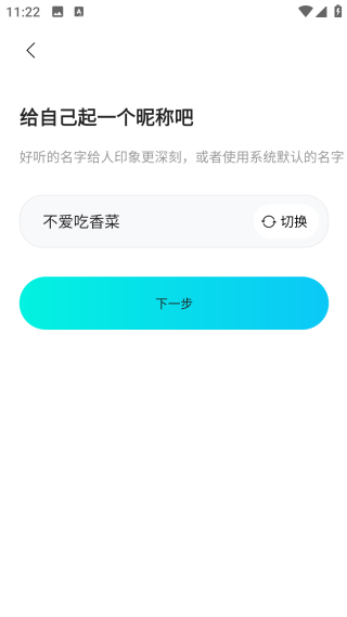 4、之后给自己的账号去一个名称,可以点击切换让系统随机选择,也能自己命名;