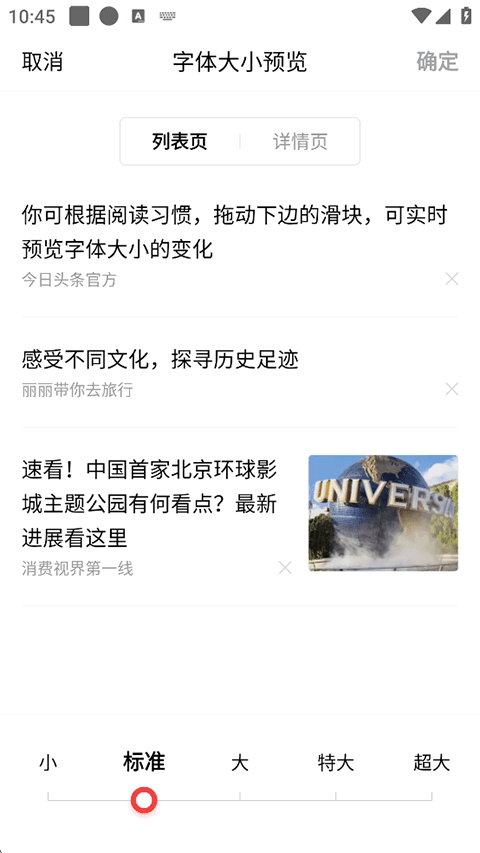 3、进入大字模式或者字体大小,就可以调整列表页、详情页等字号显示,小、标准、大、特大、超大等选择。