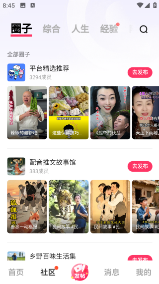 2、在社区里可以与不同用户在线互动,也能发现很多生活技巧,了解各自的故事等;