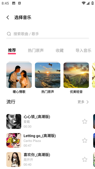 2、拥有超级强大的曲库资源,覆盖了时下流行的各种背景音乐,选对伴奏可以增加作品感染力,赋予画面全新的灵魂。