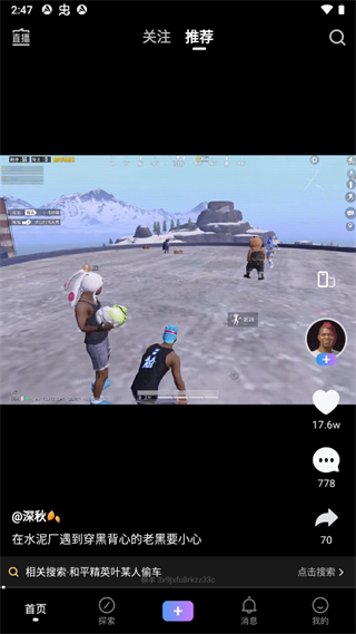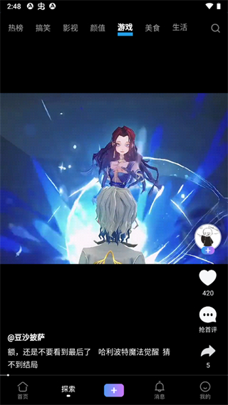 2、探索页面中有各类短视频,包括搞笑、影视、游戏、美食等。