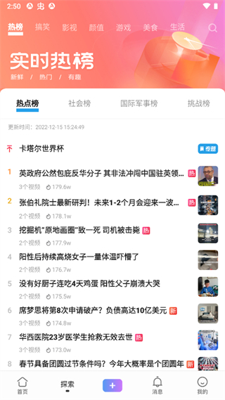 4、在探索页面点击热榜还有近期热门头条资讯浏览,掌握最新热门信息。
