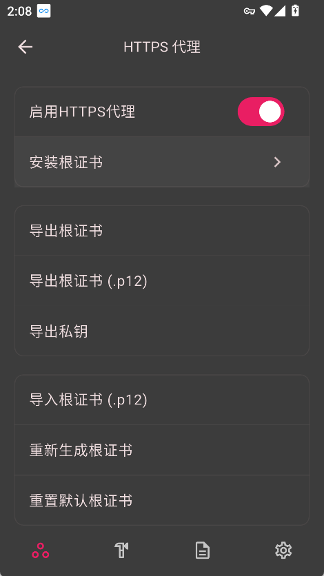 3、专门设计了证书管理与安装流程,通过配置受信任的根证书,可以成功解除加密协议的限制,窥探加密后的真实交互细节。