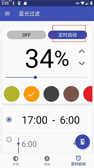 6、也可以根据日常的使用时段,设定开启定时启动服务,到点就会自动改变屏幕颜色。