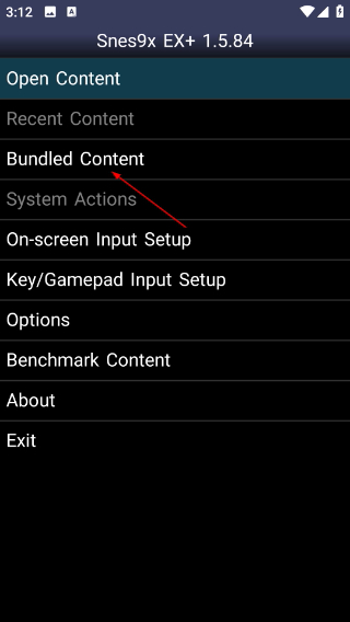 1、进入模拟器主菜单后,点击【Bundled-Content】选项,查看内置的游戏内容列表。