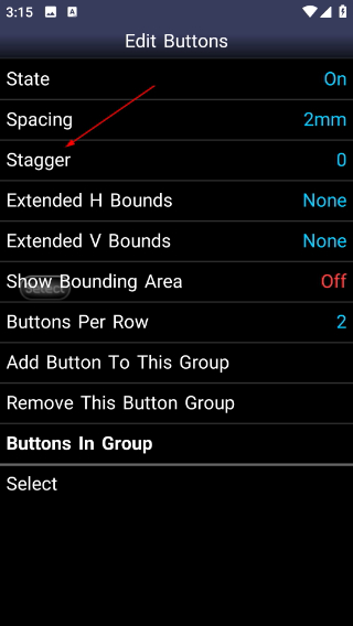 3、在编辑页点击【Stagger】选项,打开交错参数选择弹窗,可调整按键垂直偏移。