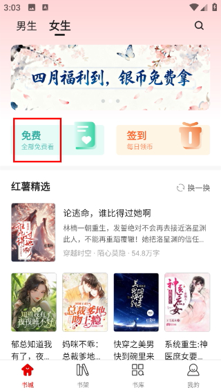 1、打开小说APP书城,点击【免费】入口进入免费书库页面。