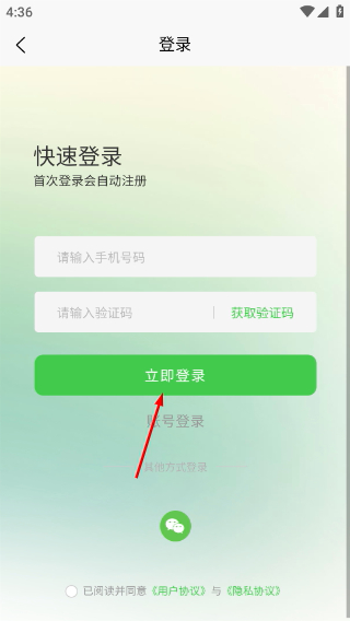 4、在登录页面填写手机号、验证码并勾选协议,点击【立即登录】完成购买流程。