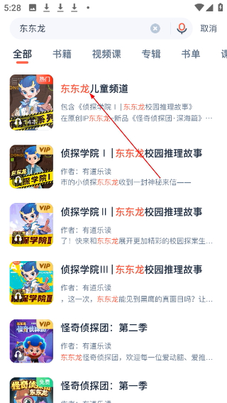4、进入页面后,点击【怪奇侦探团东东龙】专辑,即可进入该故事的播放界面。