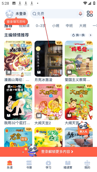 1、进入软件,点击顶部的【搜索框】,准备输入关键词查找相关儿童故事。