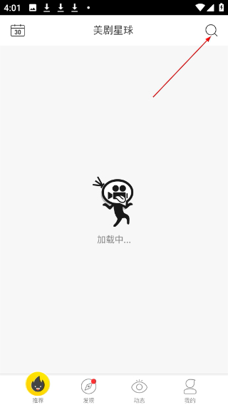 1、打开美剧星球APP,点击首页右上角的搜索图标,进入搜索界面。