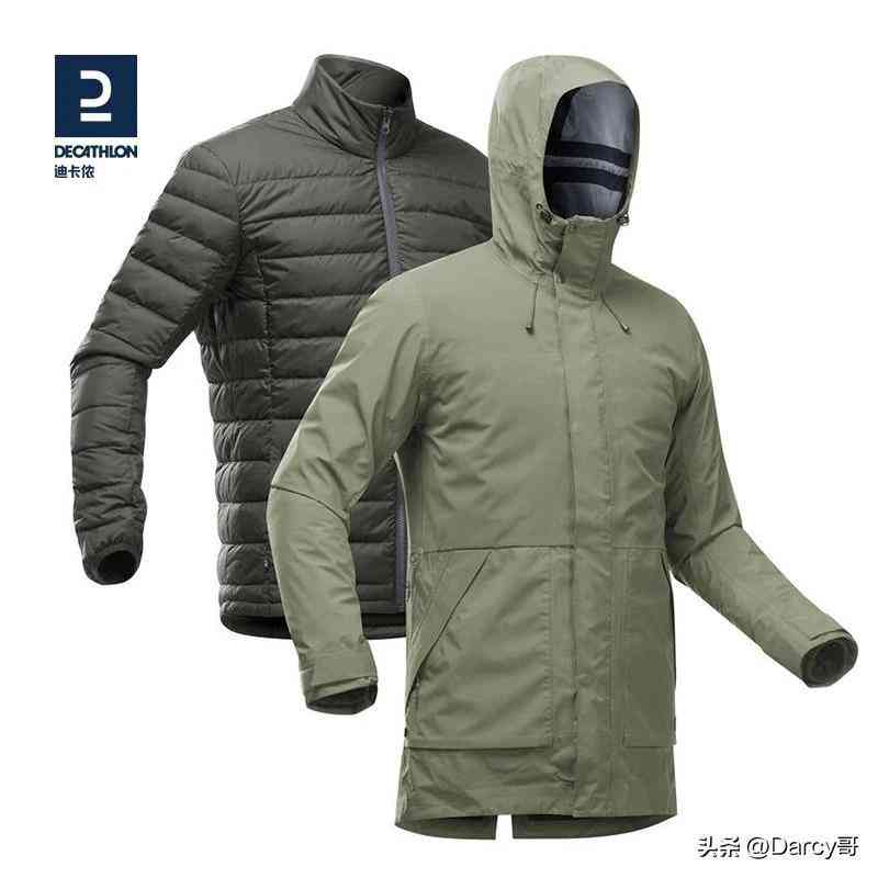 迪卡侬三合一冲锋衣可拆卸羽绒户外登山防水防风外套秋冬ODT2