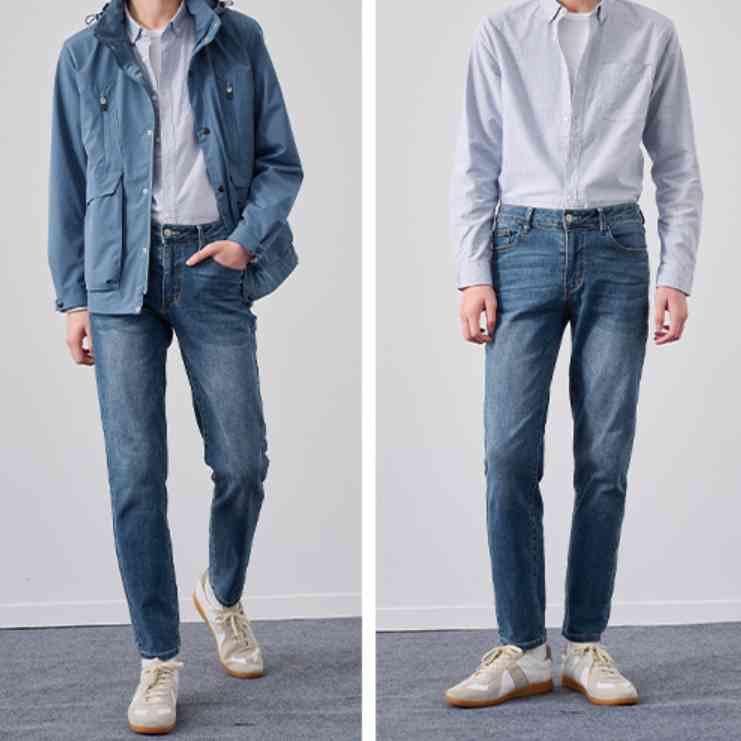 采用99%新疆棉,面料加入了莱卡纤维,使牛仔裤富有弹力且柔软舒适。上身会比较修身一点,体型偏瘦的男士穿着效果绝佳。
