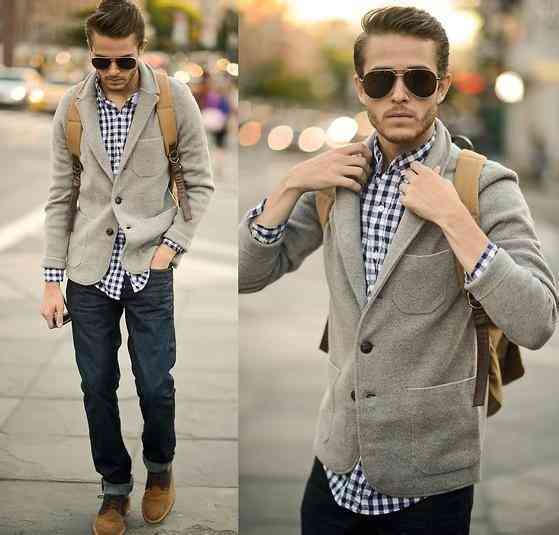 3.时尚休闲版:简单的一件格子黑白衬衫,加一件休闲的西服外套,穿上我们喜欢的牛仔和一双英伦风的休闲鞋,这样走在街上,人们完全分不清您是旅行者还是IT男又或许是老板,哈哈哈 反正我已近搞不懂了这样搭配的身份,但是我很清楚这样的搭配街头风很强很时尚,你就直接告诉我有木有。