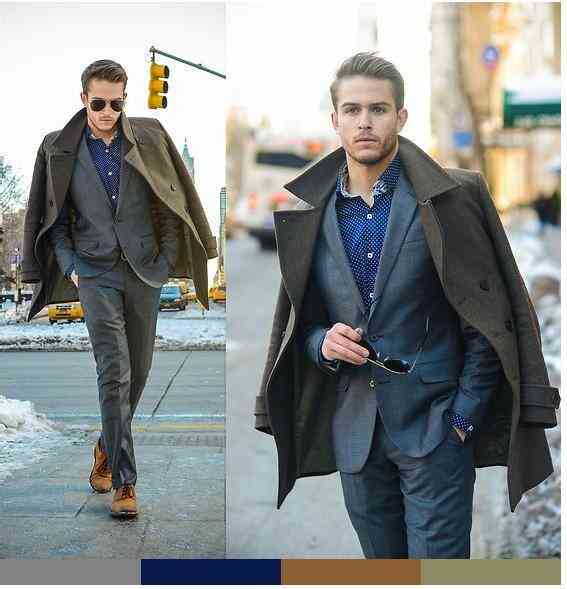 4.很强的商务风:哈哈哈,忘记了这季说得是男士磨毛格子长袖衬衫,别急,这件印花衬衣值得给你推荐一下,乱而有序的印花,外套一身正装,也不失您工作时候的气场,冬天了外加一件短款小风衣,这样的风格让我想到了犀利哥的画面,有木有,可是犀利哥因为什么出名,也是他的穿着搭配很时尚,整个人都很有气场,所以你有没有感受到如果你也这样穿,整个气场咄咄逼人呢?