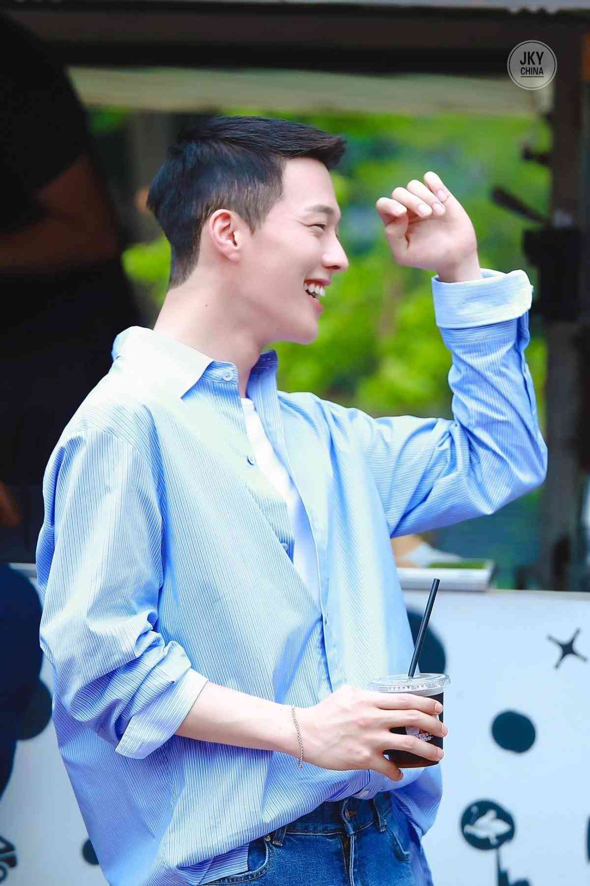 白色T恤作内搭配米色的短款外套,再搭上高腰西裤,这样的穿搭模式高级又街头风,适合比较年轻的男士,街潮style型男范十足。