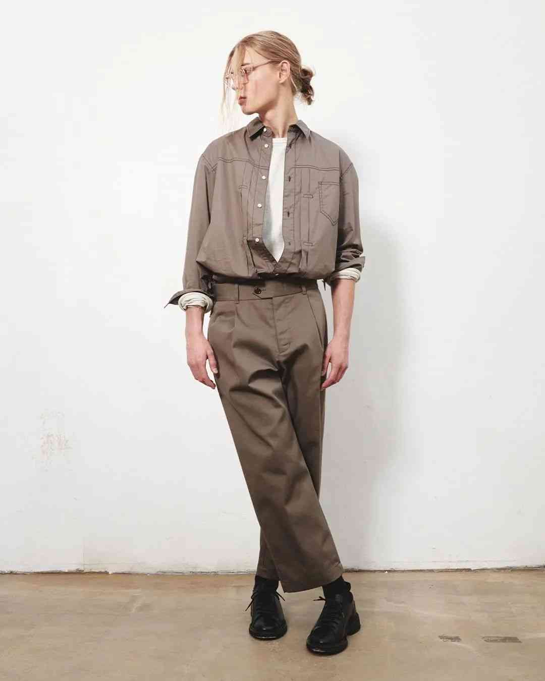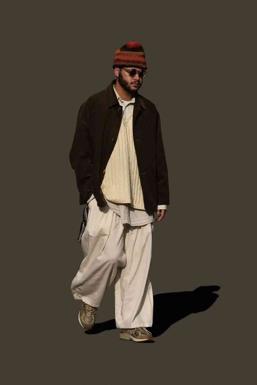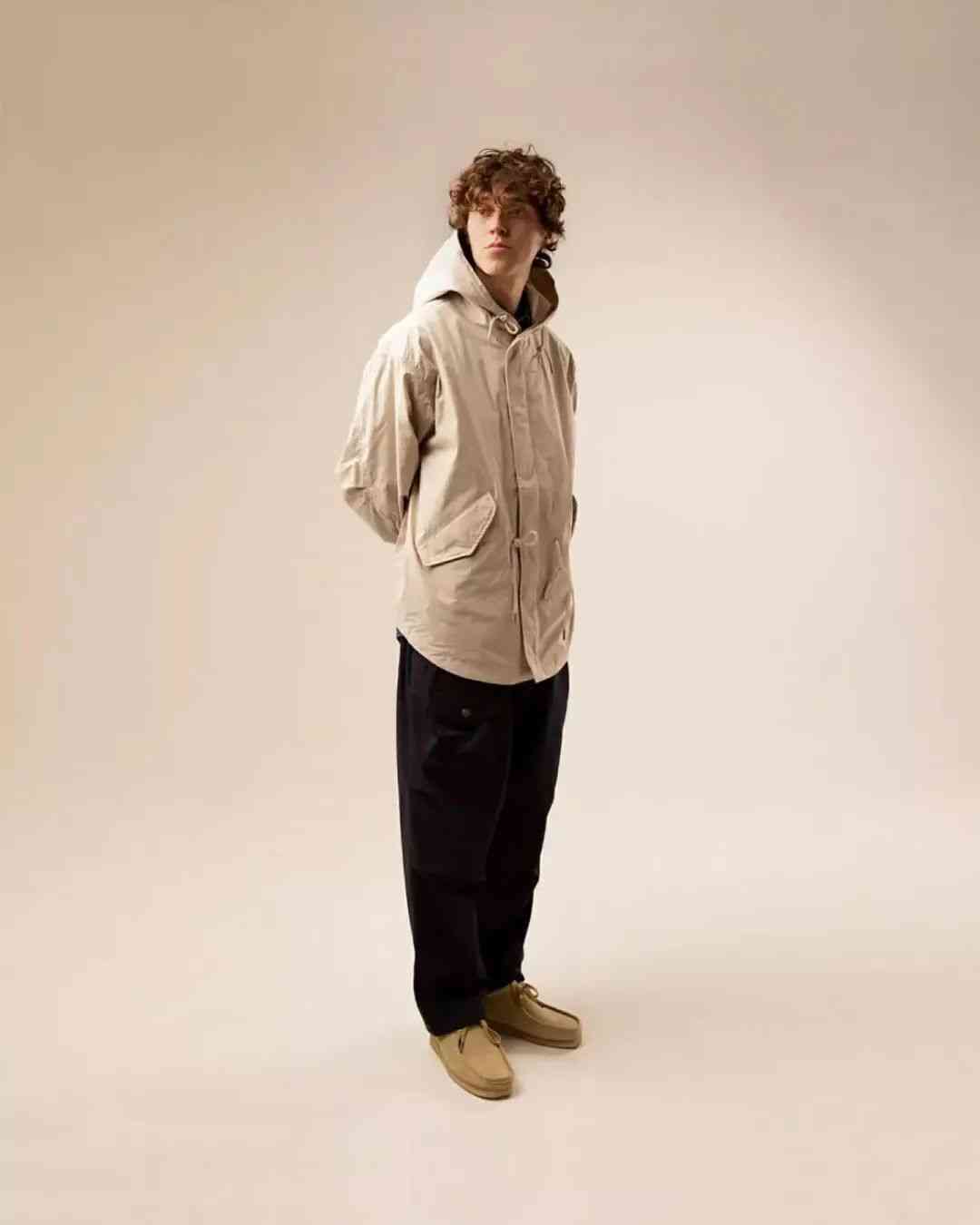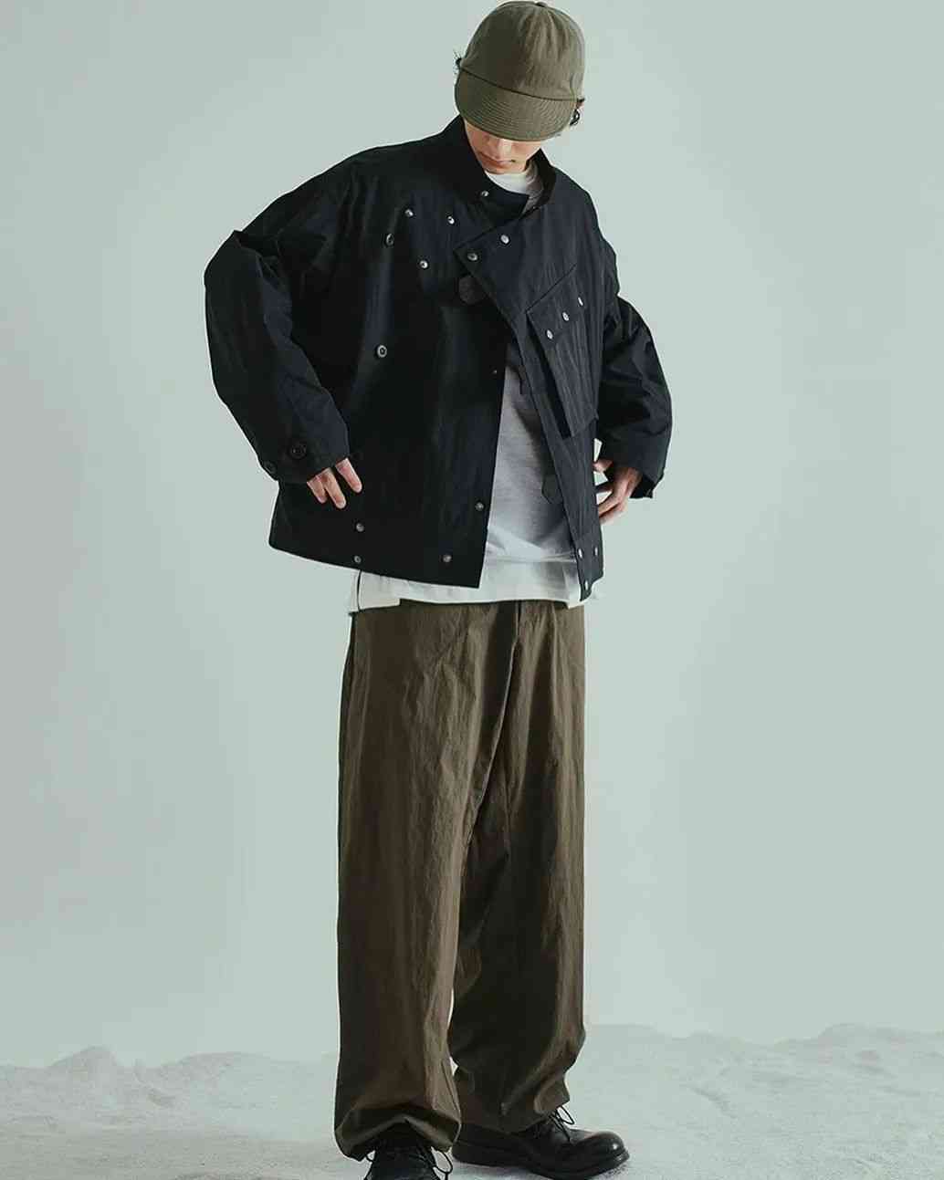 尽管都是扎根在复古军事、户外服饰的土壤当中,但 EASTLOGUE 与 Nigel Cabourn、Engineered Garments 等一众军工装品牌又有所不同。不太严谨地描述,这种感觉就好像是 EASTLOGUE 从复古军事、户外单品的档案中提取个别元素,再将它融入更具功能性的,原创的现代服饰廓形当中。而后者则并没有跳出那一个框架。