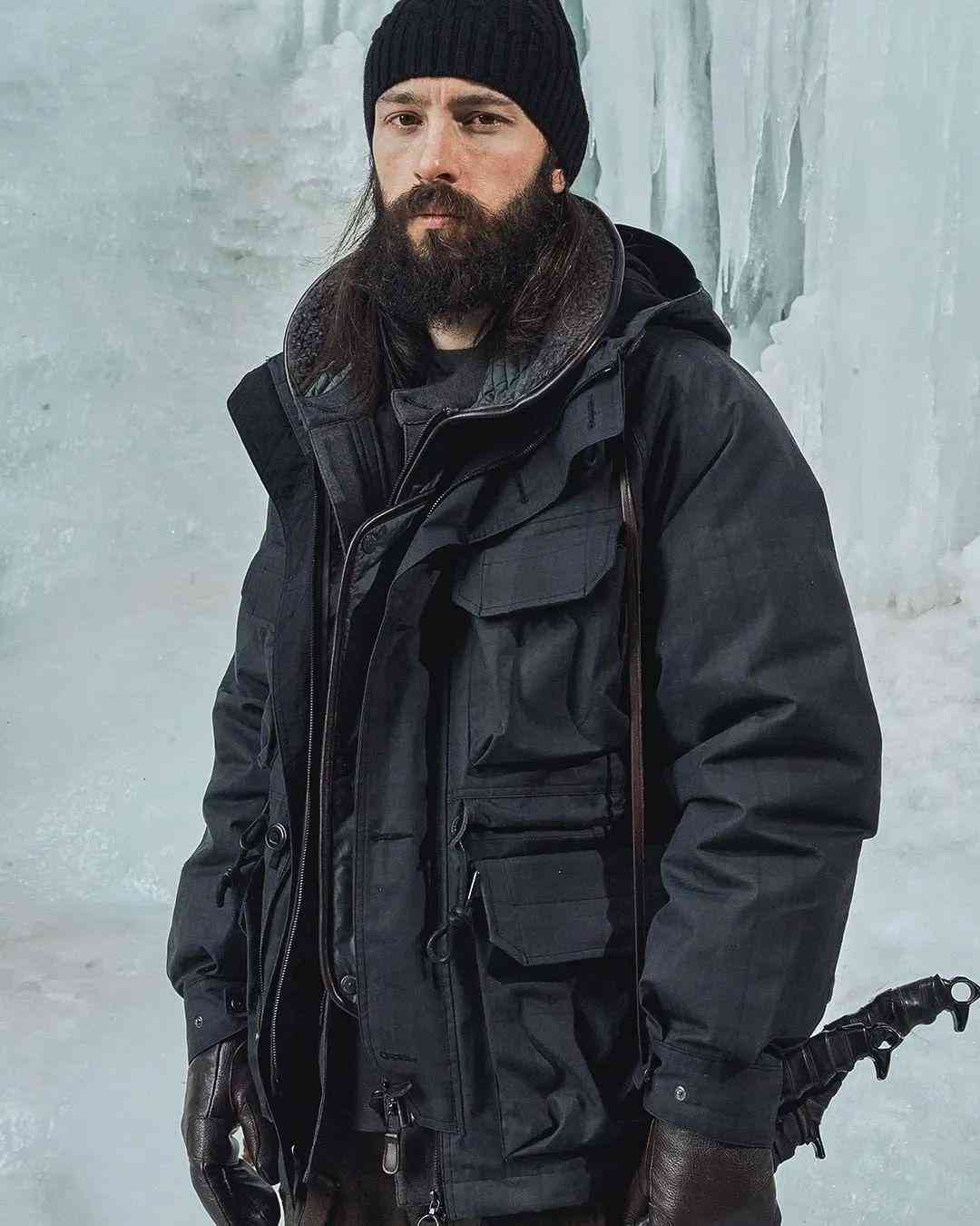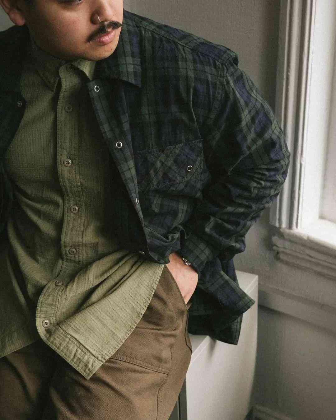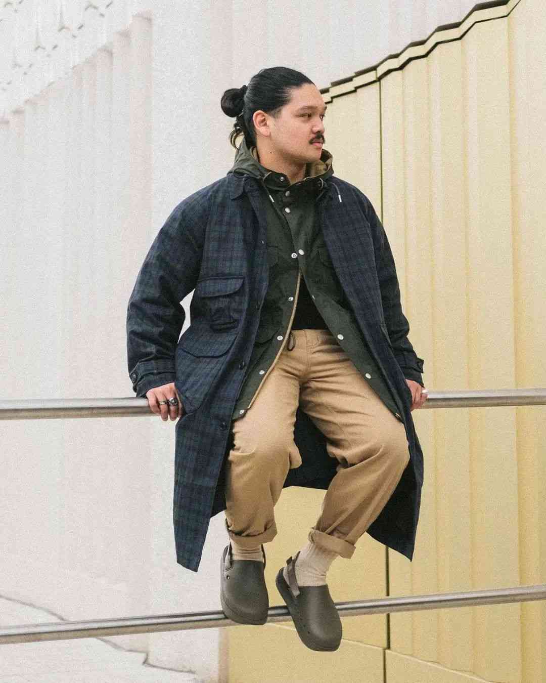 尽管都是扎根在复古军事、户外服饰的土壤当中,但 EASTLOGUE 与 Nigel Cabourn、Engineered Garments 等一众军工装品牌又有所不同。不太严谨地描述,这种感觉就好像是 EASTLOGUE 从复古军事、户外单品的档案中提取个别元素,再将它融入更具功能性的,原创的现代服饰廓形当中。而后者则并没有跳出那一个框架。