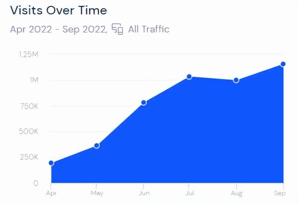 2022年,BloomChic的独立站流量出现大幅增长,站内流量已经超百万。根据similarweb数据显示,bloomchic.com的流量在今年五月份迎来爆发性增长,9月份整体流量已经破百万,达到115万。