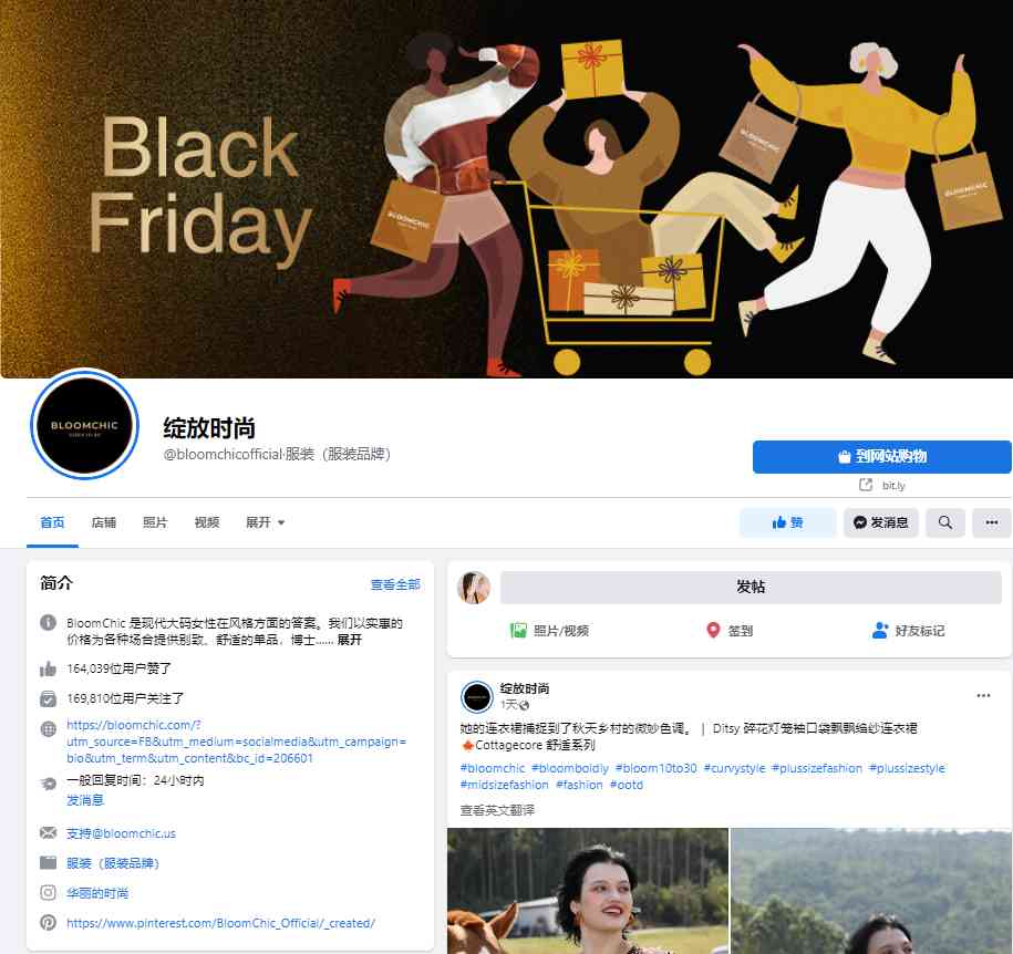 BloomChic在主流的社媒平台上表现较稳,有其差异化运营特点。