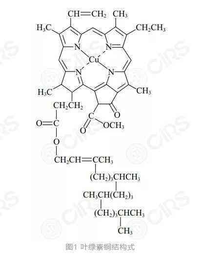 叶绿素铜(COPPERCHLOROPHYLL)也是一种着色剂,其结构式如图1所示。叶绿酸-铜络合物和叶绿素铜不是同一种物质,叶绿素铜未收载于《化妆品安全技术规范》着色剂列表中,其作为着色剂使用的安全性需要进一步论证。