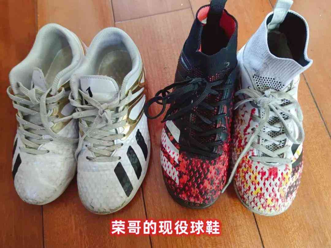 这双是荣个人足球生涯的.双足球鞋,当时给荣哥买安踏的衣服顺势凑了一双鞋,想着他可能日后踢足球会有用,谁知道后来他还真的走上足球这条路了。