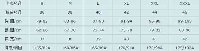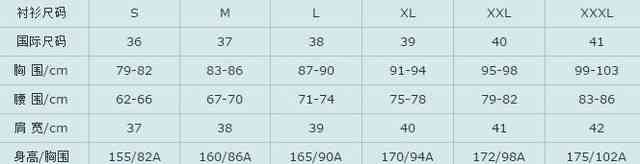 女衬衫标准尺码对照表