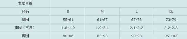 女式内裤尺码表