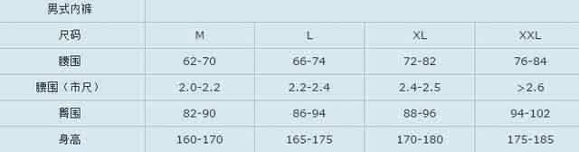 男式内裤尺码表