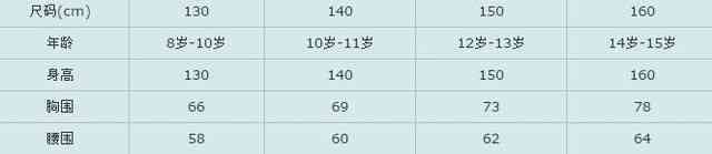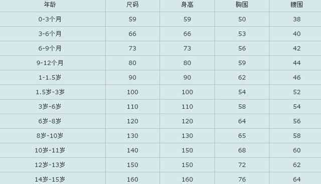 童装尺码对照表