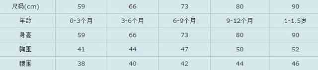 婴童尺码对照表