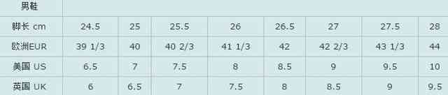 男鞋尺码表