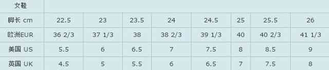 女鞋尺码表