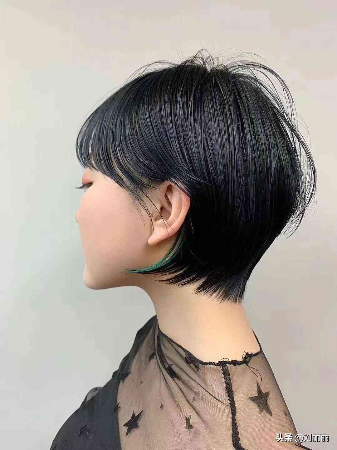 好看的发型离不开流行发色的点缀,一款立体的短发,哪怕只是在耳后加入一束蓝色的挑染,就使美感提升了一大截。