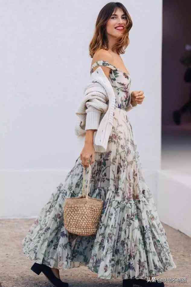 纯色系的针织开衫会更偏向于简约休闲,日常可作为牛仔裤的组合进行通勤搭配。为了增加造型丰富的细节感,我们可以在一款宽肩吊带的长款连衣裙上点缀花纹,尤其是飘逸的雪纺面料加上花纹修饰更显清透感。外简内繁的组合能够稳稳拿捏住视觉的审美焦点。