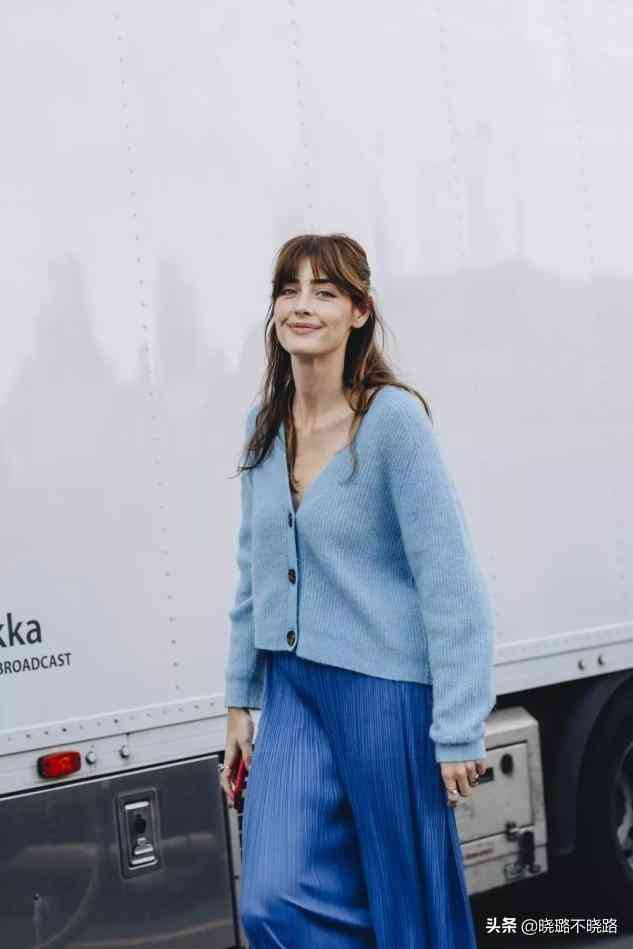 如果你对于针织开衫和吊带裙的丰富色彩无法准确拿捏,那么不如挑选一种你最喜爱的色彩,适当的调节两件单品和色彩浓度对比,也可以打造出细致的造型层次渐进感。