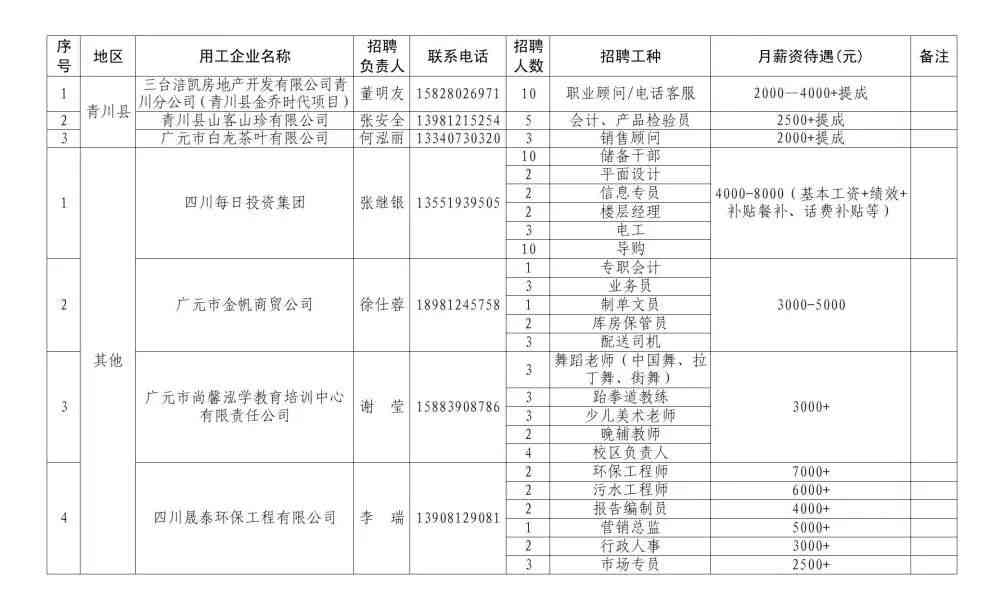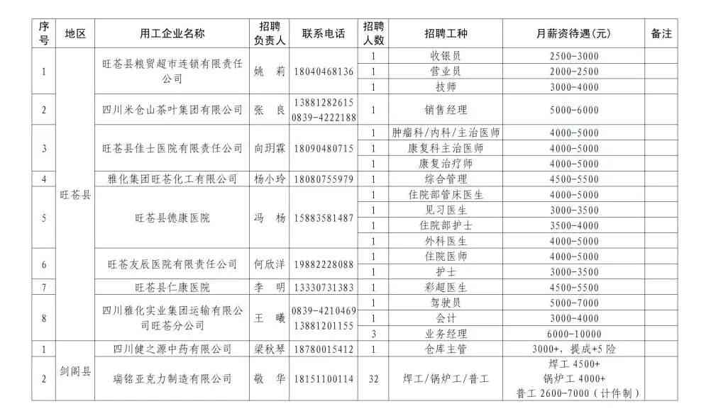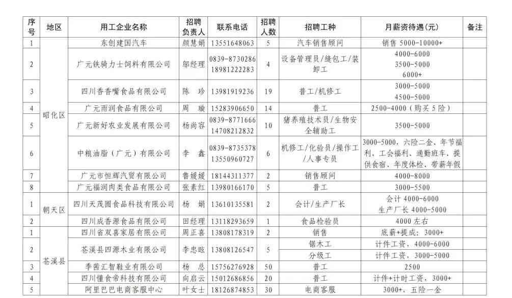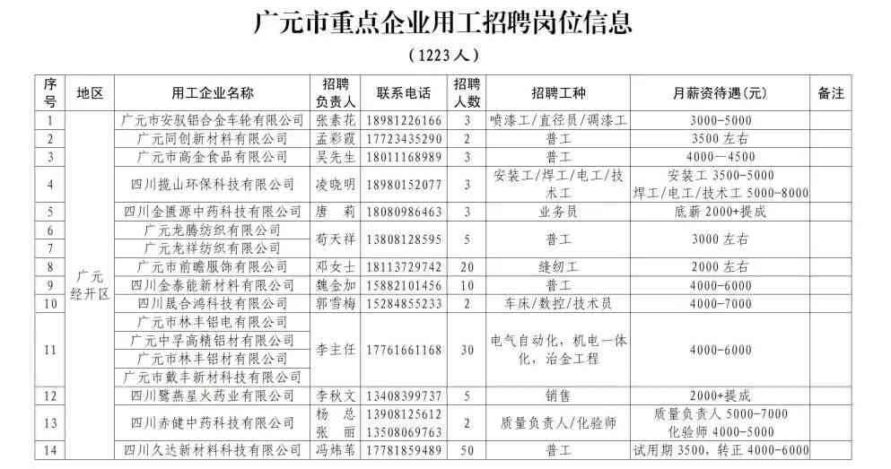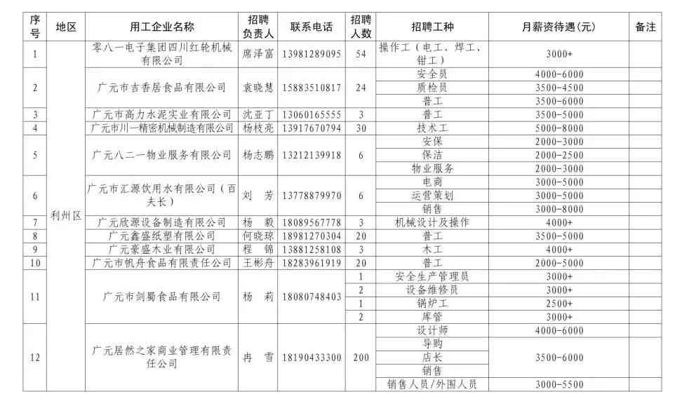 附件2:广元市重点企业用工招聘岗位信息