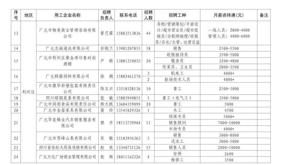 三、信息发布。相关企业项目的用工招聘岗位信息在广元市人力资源和社会保障局网站(srsj.cngy.gov.cn)及“广元人社”微博微信、广元公共招聘网(gy.sc91.org.cn)、广元人才网(http://www.cbrcw.com)等平台同步推送,并适时通过广元日报、广元市广播电视台及其微信公众号发布。