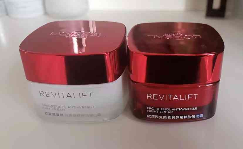 复颜抗皱面霜分为日霜和晚霜,日霜是白瓶,晚霜是红瓶,成分还是主打的视黄醇。