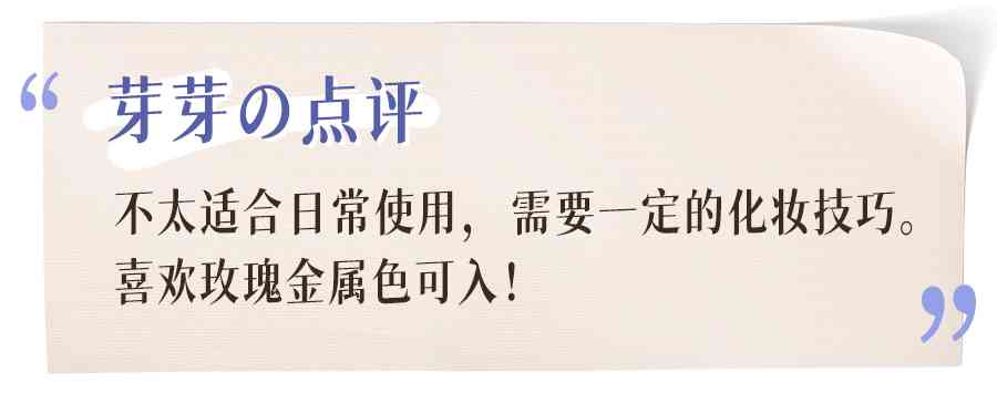 54号是个很特别的玫瑰金属色,金属的质感很重,感觉稍微有点点夸张。不过用起来很丝滑,防水效果也是杠杠的~