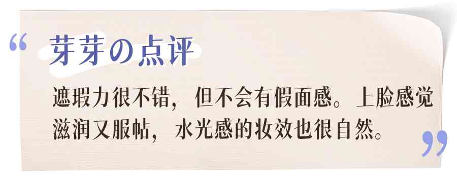 不是那种油润的质地,但用起来很滋润,而且延展性出奇得好,也特别轻薄。很适合遮盖像黑眼圈这类瑕疵,眼下不会卡纹。